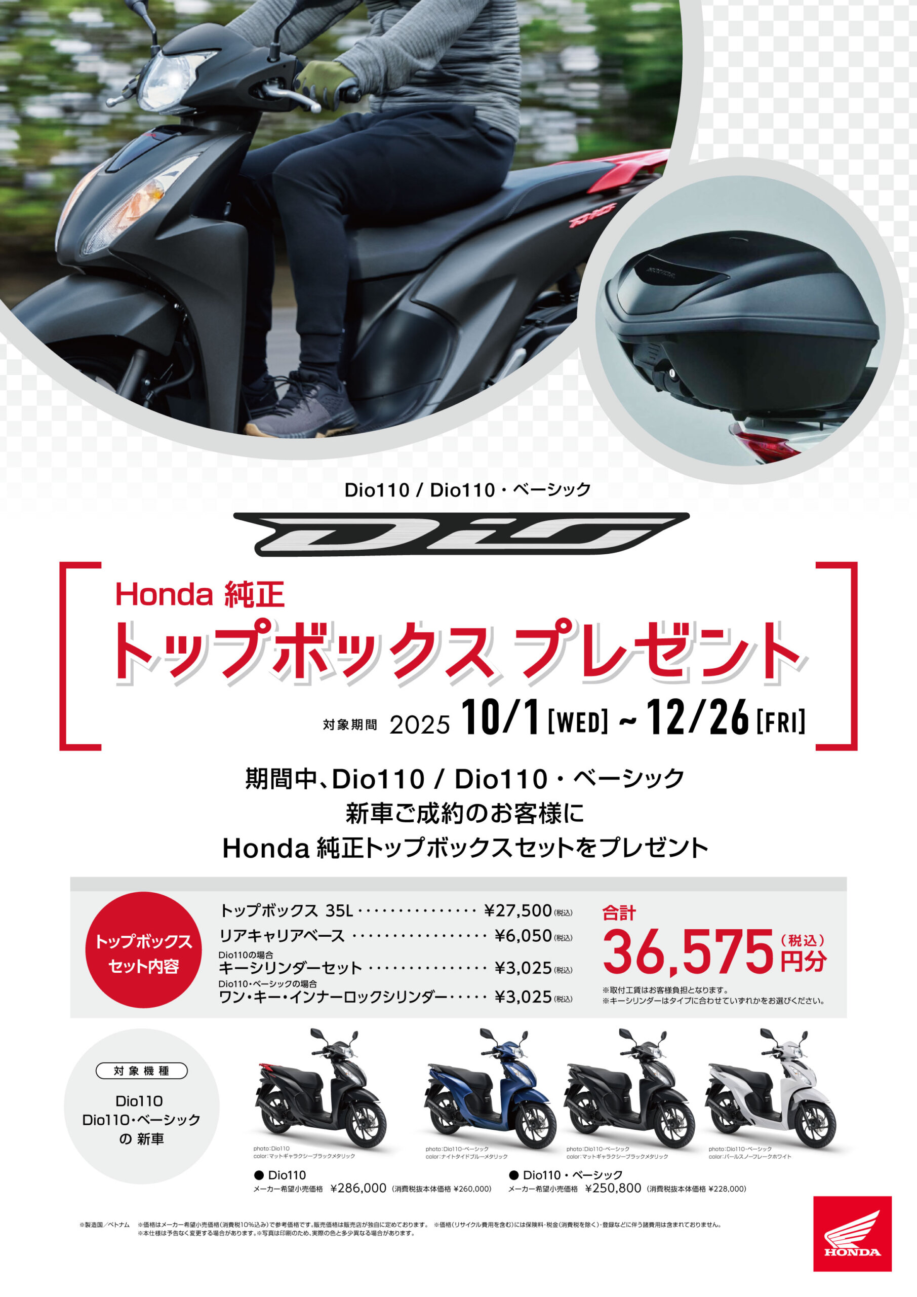 2025/10/01「Dio110」「Dio110・ベーシック」新車ご成約キャンペーン!